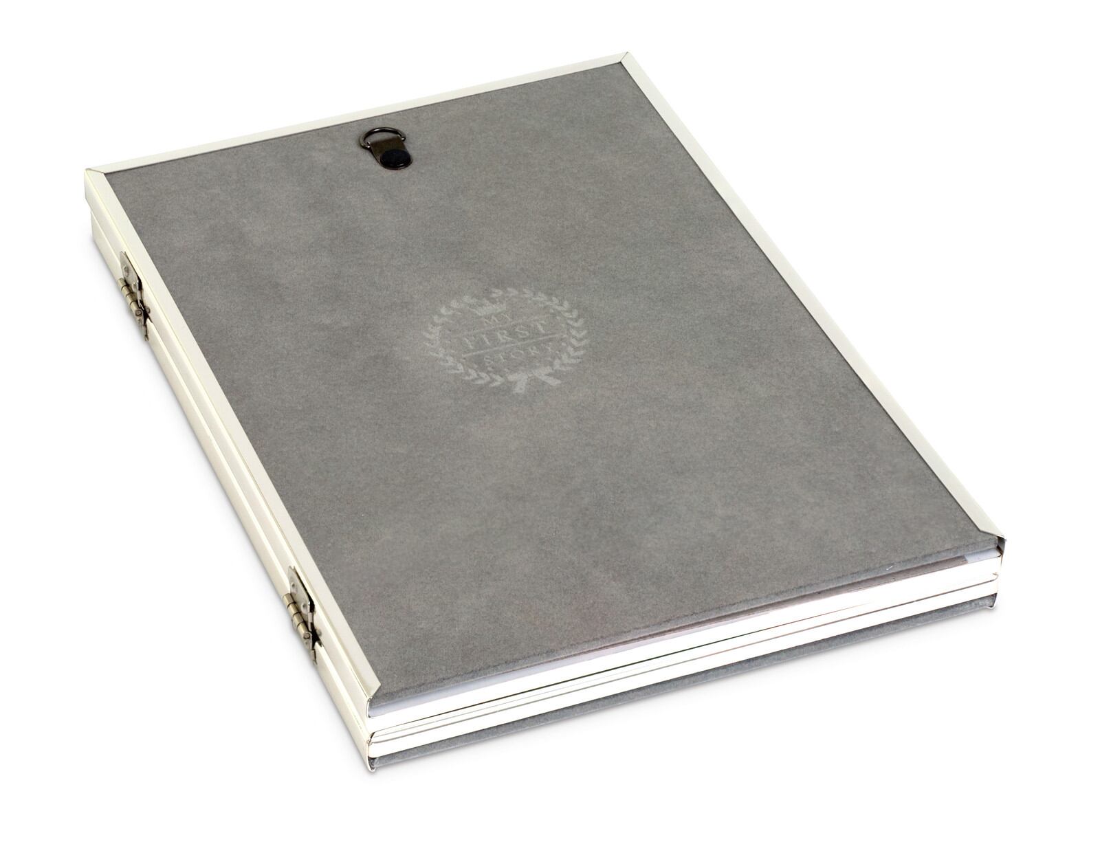 大きい写真をそのままいっぱい飾れる、とても素敵な赤ちゃんのフォトフレームです。ゴールドとシルバーのプリントにキラキラと散りばめられたクリスタルラインストーンがピュアな感じ。