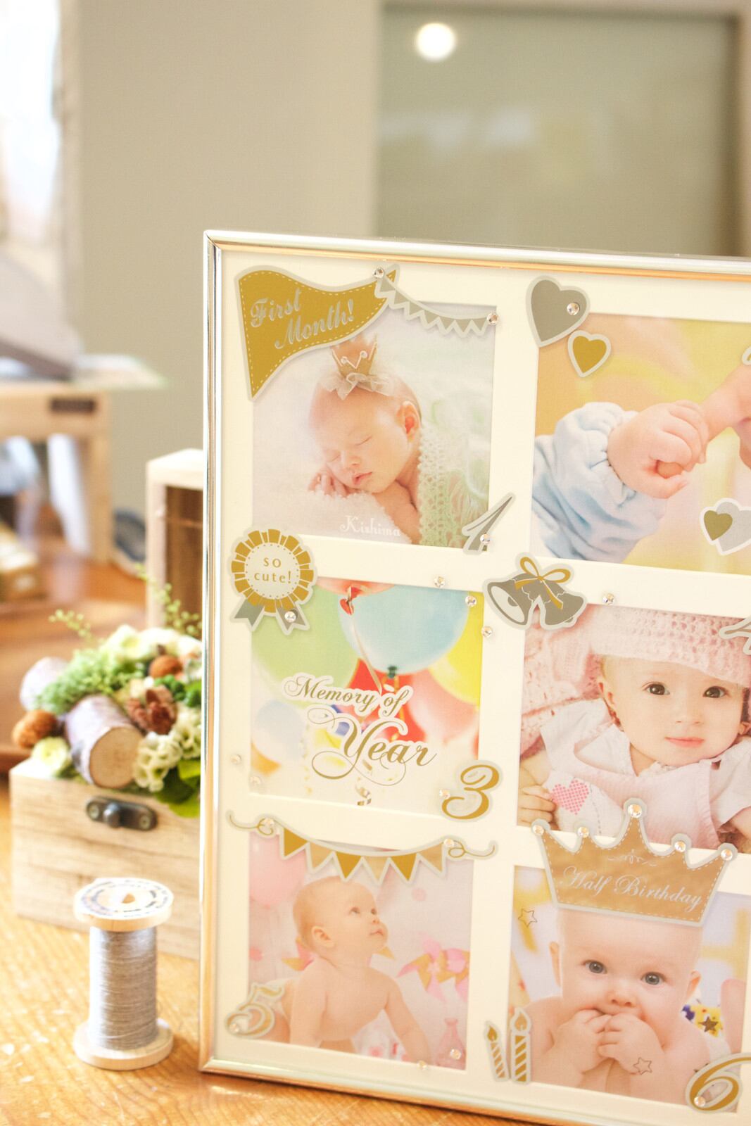 【生まれてから1歳までの誕生日までの成長写真を飾れる】