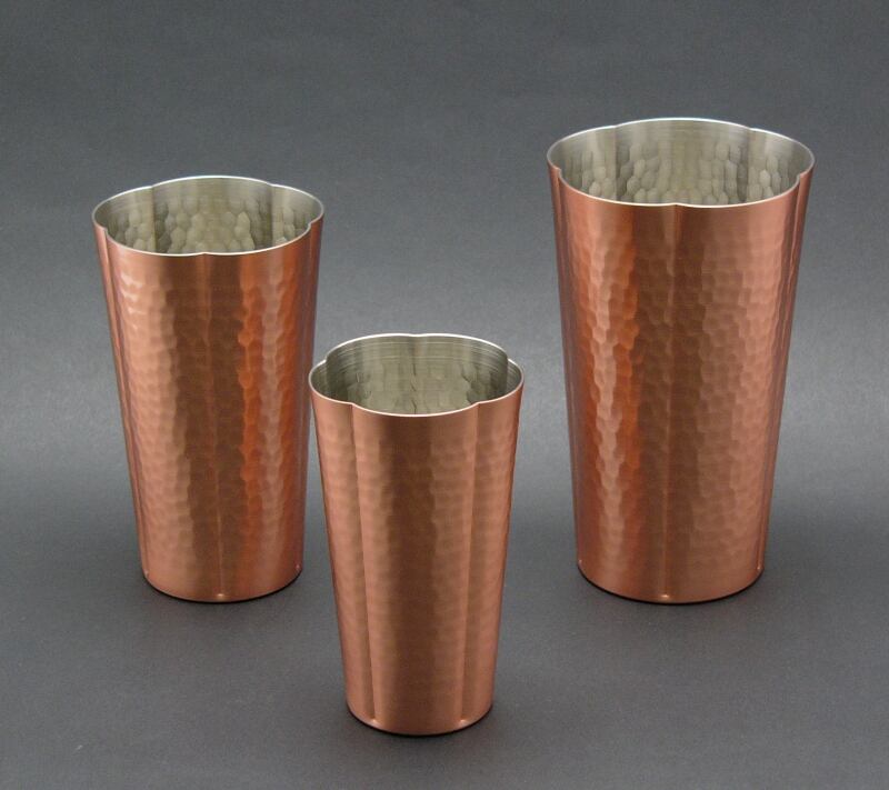 【職人の手打ちによるきめ細かい鎚目が美しい純銅タンブラー】