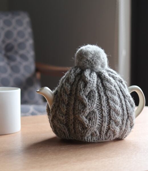 海に囲まれた風雨で強い地方で育てられるため、丈夫で保温性抜群です。原料のウールは、英国羊毛公社の保証する高品質なもののみを使用。ナチュラルな風合いが魅力的なケーブル編みで、ティーポットを可愛く温め、素敵なティータイムを演出してくれます。