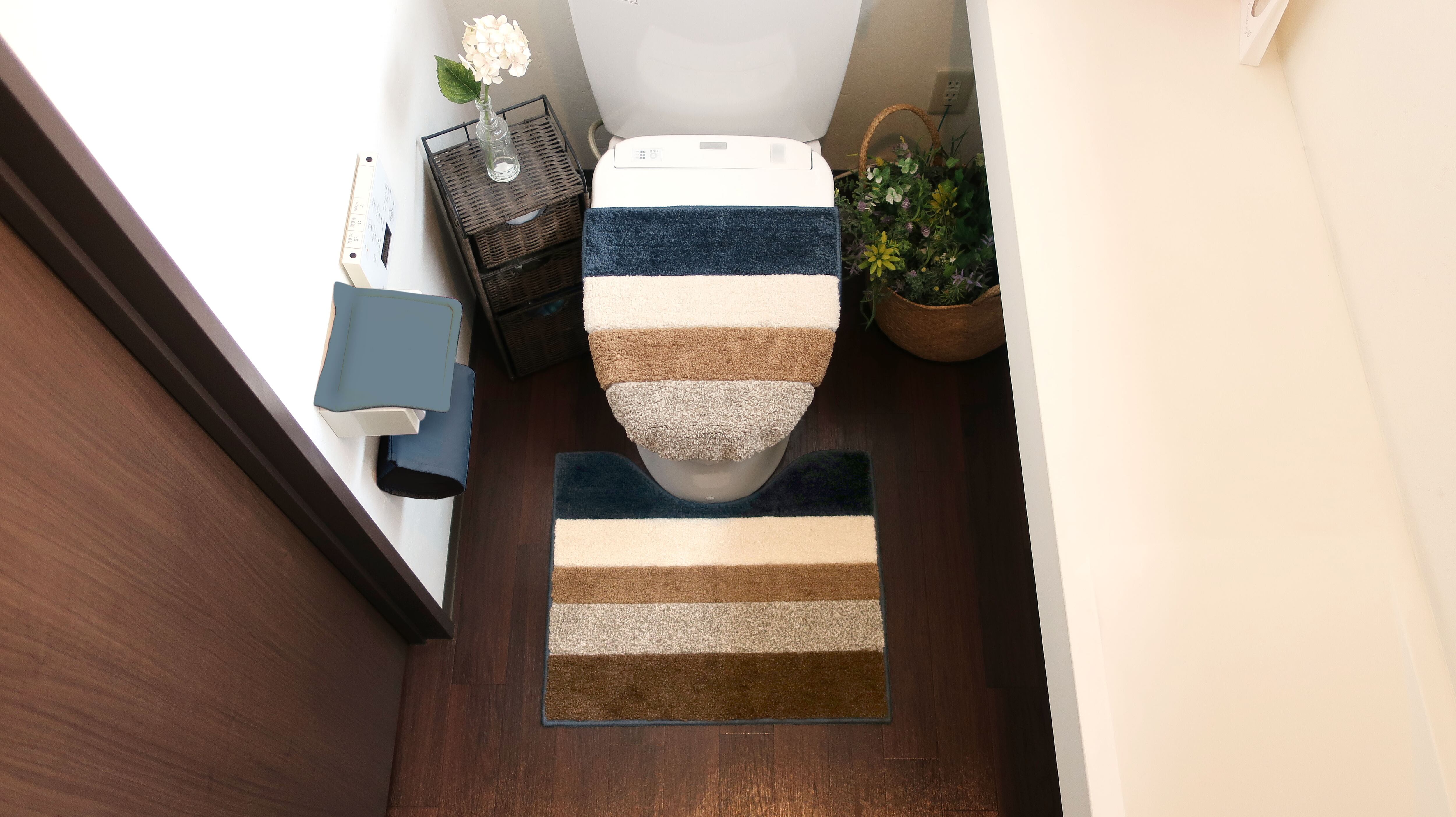 ボーダーが立体的で踏み心地バツグンのトイレマットとフタカバー2点セットです。